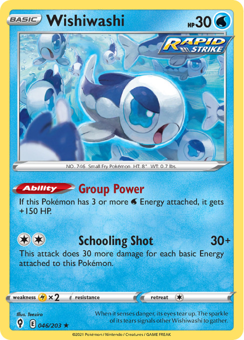 When it senses danger, its eyes tear up. The sparkle of its tears signals other Wishiwashi to gather.