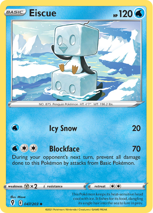 This Pokémon keeps its heat-sensitive head cool with ice. It fishes for its food, dangling its single hair into the sea to lure in prey.