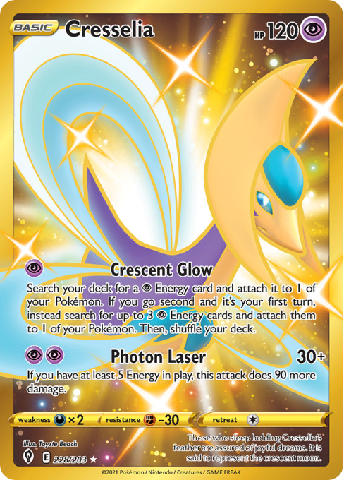Those who sleep holding Cresselia's feather are assured of joyful dreams. It is said to represent the crescent moon.