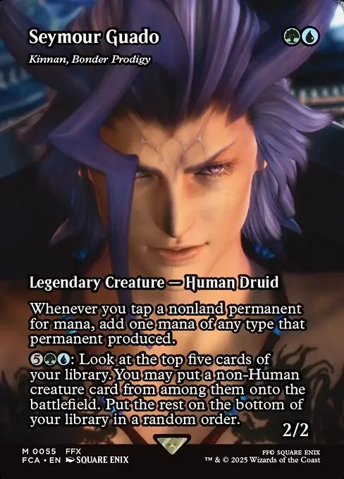 : Look at the top five cards of your library. You may put a non-Human creature card from among them onto the battlefield. Put the rest on the bottom of your library in a random order.