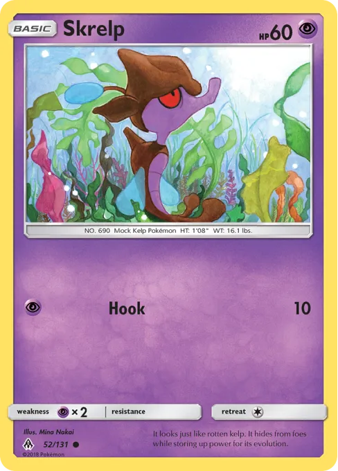 It looks just like rotten kelp. It hides from foes while storing up power for its evolution.