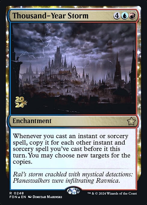 Whenever you cast an instant or sorcery spell, copy it for each other instant and sorcery spell you've cast before it this turn. You may choose new targets for the copies.