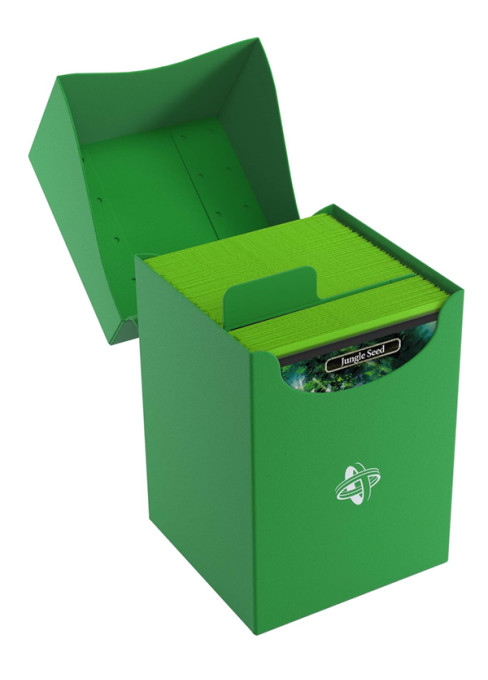 Kvalitní pevná krabička DECK HOLDER 100+ na karty, schopná pojmout celý 100 karetní balíček i pokud jsou karty v obalech. Zaklapovací víko může být otevřeno až do úhlu 180° pro snadný přístup a je opatřeno popisovacím štítkem. Obsahuje také divider na třídění karet.