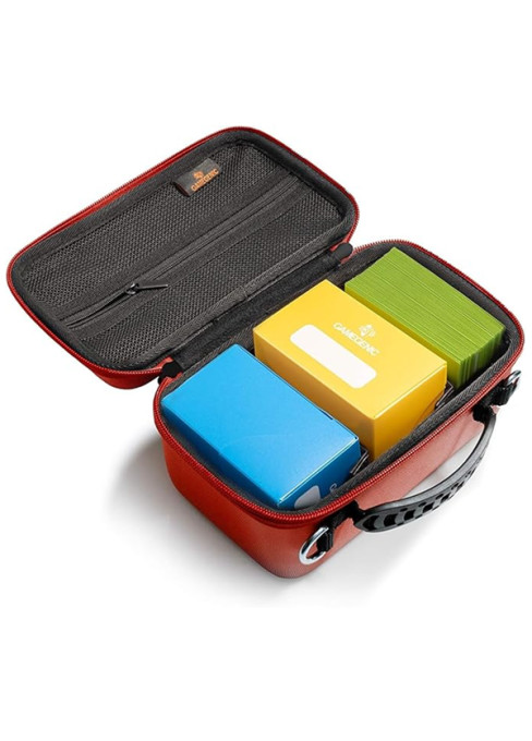 Pojme až 250 karet ve dvojitém obalu a dodává se se 2 odnímatelnými přepážkami, které umožňují vytvořit v kufříku jednotlivé přihrádky. To umožňuje přizpůsobitelné uspořádání několika krabiček, jednotlivých karet nebo kostek a žetonů.