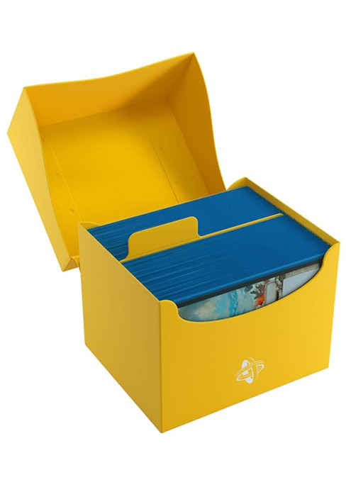 Kvalitní pevná krabička SIDE HOLDER 100+ XL na karty, schopná pojmout celý 100 karetní balíček i pokud jsou karty v obalech. Zaklapovací boční víko může být otevřeno až do úhlu 180° pro snadný přístup a je opatřeno popisovacím štítkem. Obsahuje také divider na třídění karet. narozdíl od klasického DECK HOLDERU 100+ se karty do této krabičky vkládají na bok.