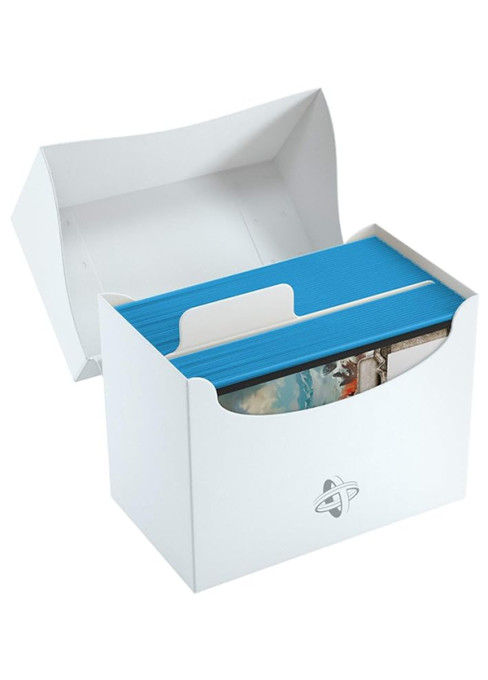 Kvalitní pevná krabička SIDE HOLDER 80+ na karty, schopná pojmout celý 80 karetní balíček i pokud jsou karty v obalech. Zaklapovací boční víko může být otevřeno až do úhlu 180° pro snadný přístup a je opatřeno popisovacím štítkem. Obsahuje také divider na třídění karet. narozdíl od klasického DECK HOLDERU 80+ se karty do této krabičky vkládají na bok.