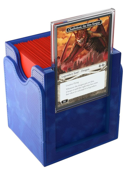 Řada SQUIRE je navržena tak, aby prezentovala karty novými a jedinečnými způsoby. Vložte svého commandera do pouzdra a to následně zasunete z boku krabičky. Je také vybavena silnými magnety, které ji udrží bezpečně zavřenou. Jednotlivé části krabičky jsou odnímatelné a dají se tak kombinovat s jinými variantami krabiček.