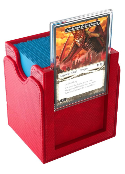 Gamegenic SQUIRE PLUS XL 100+ je ultimátní krabička na karty a karetní hry, do které se vejde 100+ běžných karet v double sleeve obalech. V čele krabičky je vyjímatelné plastové pouzdro, kam si můžete uložit svého commandera a vždy tak na první pohled vidět o jaký deck se jedná. Má příjemný, odolný povrch vyrobený z nexofyberového materiálu. Vnitřek krabičky je vystlán mikrovláknem.