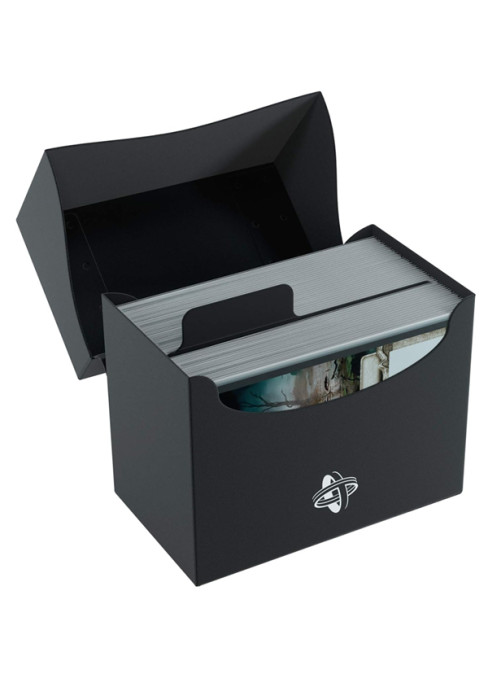 Kvalitní pevná krabička SIDE HOLDER 80+ na karty, schopná pojmout celý 80 karetní balíček i pokud jsou karty v obalech. Zaklapovací boční víko může být otevřeno až do úhlu 180° pro snadný přístup a je opatřeno popisovacím štítkem. Obsahuje také divider na třídění karet. narozdíl od klasického DECK HOLDERU 80+ se karty do této krabičky vkládají na bok.
