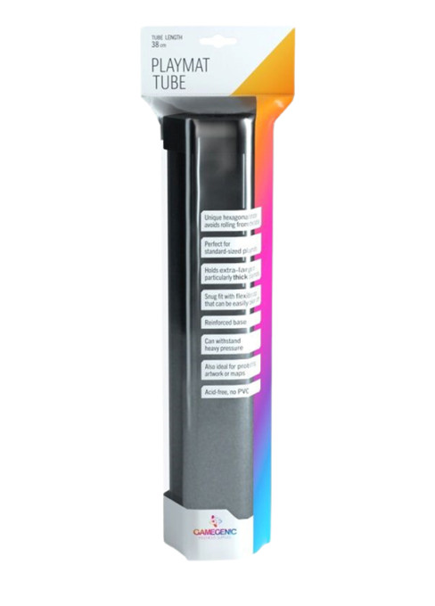 Gamegenic Playmat Tube je tubus z pevného plastu designovaný pro všechny typy Standard-sized podložek. Jedná se o perfektní ochranu jak pro hrací podložky, tak například i pro výkresy, printy, či plakáty až o šířce 38 cm. Je opatřen gumovým uzávěrem a dokáže obsah ochránit i proti dešti či krátkodobému ponoření do vody.