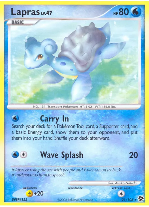 It loves crossing the sea with people and Pokémon on its back. It understands human speech.