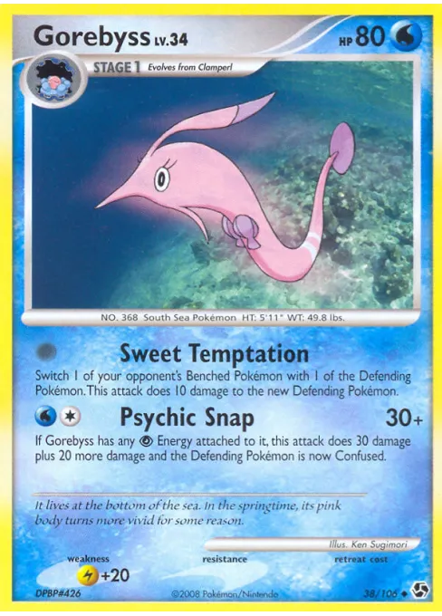 If Gorebyss has any Psychic Energy attached to it, this attack does 30 damage plus 20 more damage and the Defending Pokémon is now Confused.