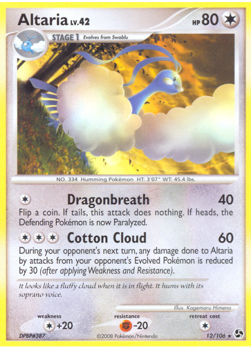 During your opponent's next turn, any damage done to Altaria by attacks from your opponent's Evolved Pokémon is reduced by 30 (after applying Weakness and Resistance).