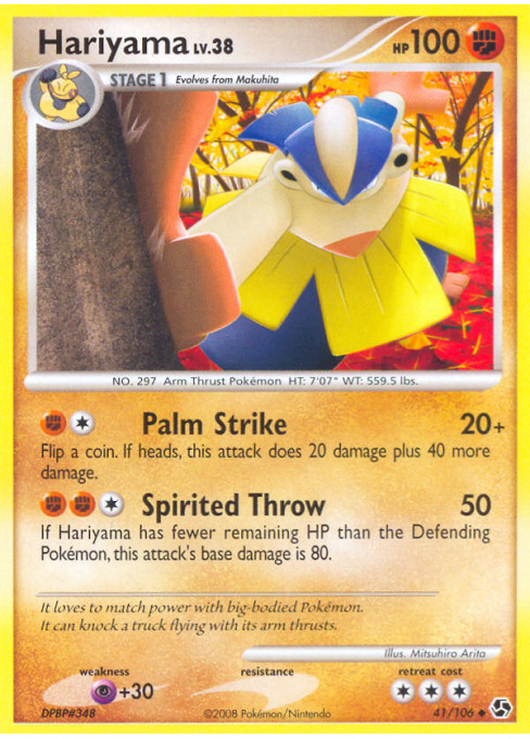 If Hariyama has fewer remaining HP than the Defending Pokémon, this attack's base damage is 80.