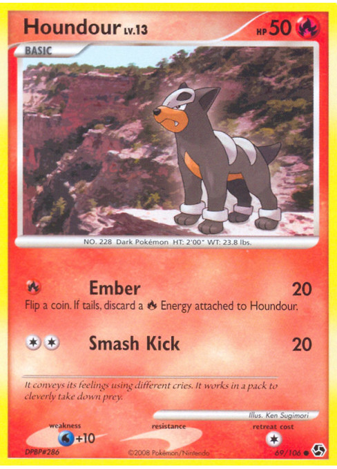 Flip a coin. If tails, discard a Fire Energy attached to Houndour.