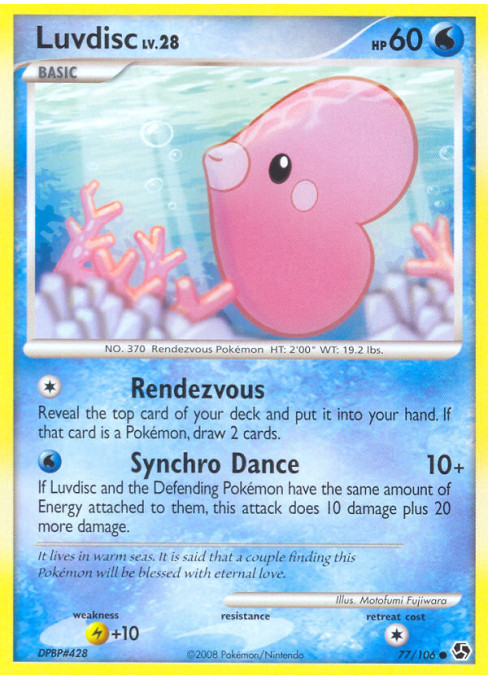 If Luvdisc and the Defending Pokémon have the same amount of Energy attached to them, this attack does 10 damage plus 20 more damage.