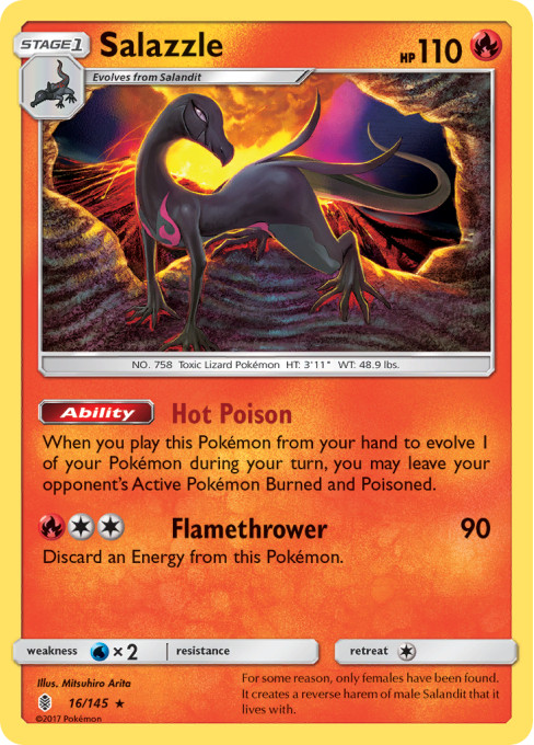 When you play this Pokémon from your hand to evolve 1 of your Pokémon during your turn, you may leave your opponent's Active Pokémon Burned and Poisoned.