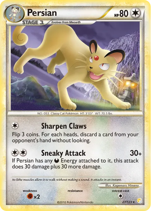 If Persian has any Darkness Energy attached to it, this attack does 30 damage plus 30 more damage.