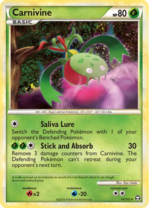 Remove 3 damage counters from Carnivine. The Defending Pokémon can't retreat during your opponent's next turn.