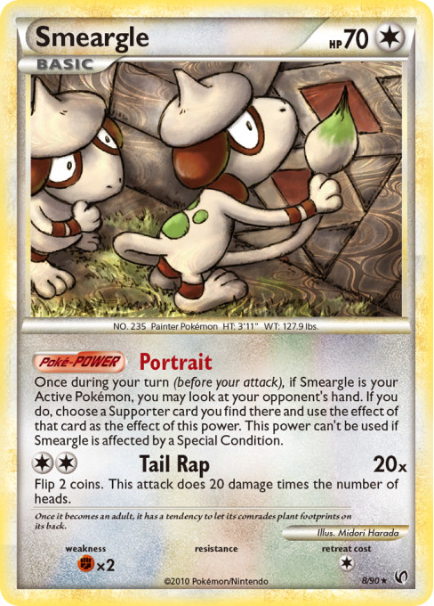 Once during your turn (before your attack), if Smeargle is your Active Pokémon, you may look at your opponent's hand. If you do, choose a Supporter card you find there and use the effect of that card as the effect of this power. This power can't be used if Smeargle is affected by a Special Condition.