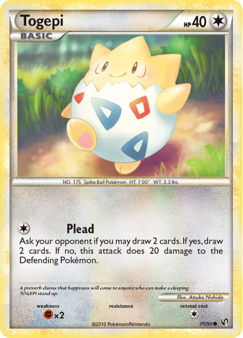 A proverb claims that happiness will come to anyone who can make a sleeping Togepi stand up.