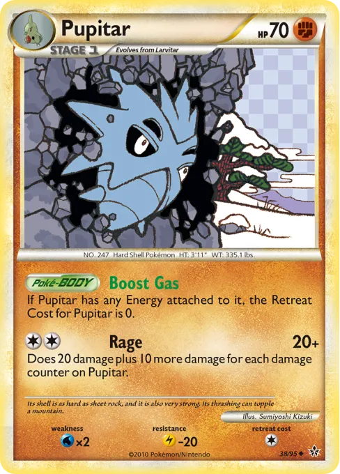If Pupitar has any Energy attached to it, the Retreat Cost of Pupitar is 0.