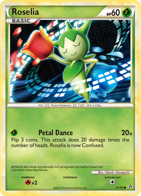 Flip 3 coins. This attack does 20 damage times the number of heads. Roselia is now Confused.