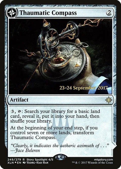 At the beginning of your end step, if you control seven or more lands, transform Thaumatic Compass.