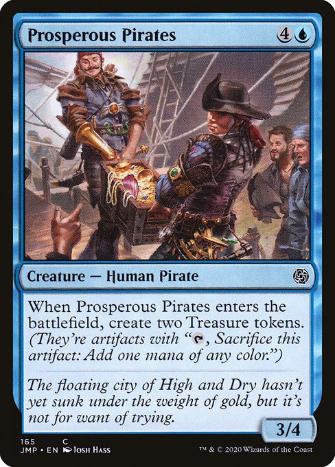 When Prosperous Pirates enters, create two Treasure tokens. (They're artifacts with ", Sacrifice this artifact: Add one mana of any color.")