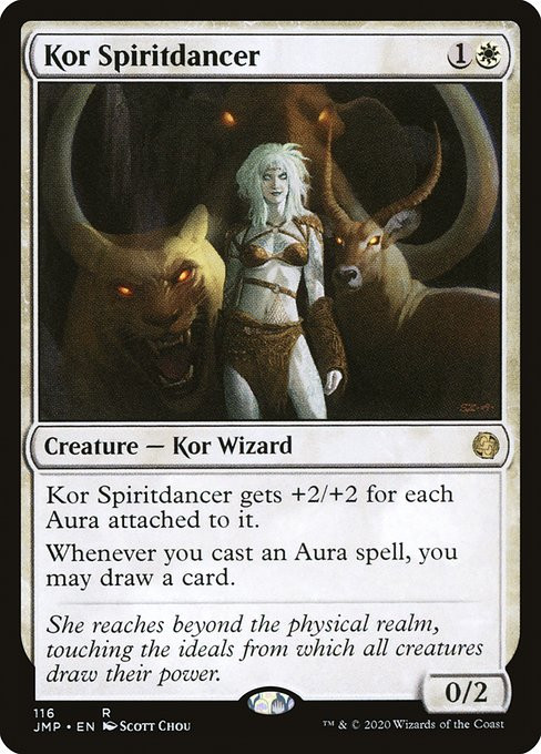 Kor Spiritdancer gets +2/+2 for each Aura attached to it.