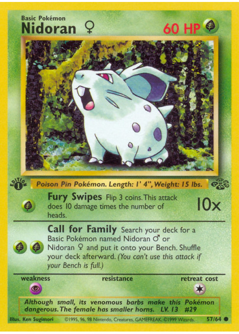 Although small, its venomous barbs make this Pokémon dangerous. The female has smaller horns.