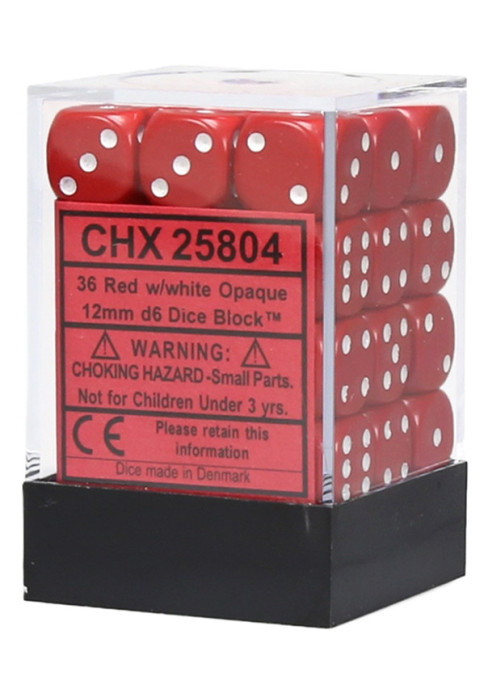 CHESSEX - (36)Dice D6 /12 mm - Red w/white
