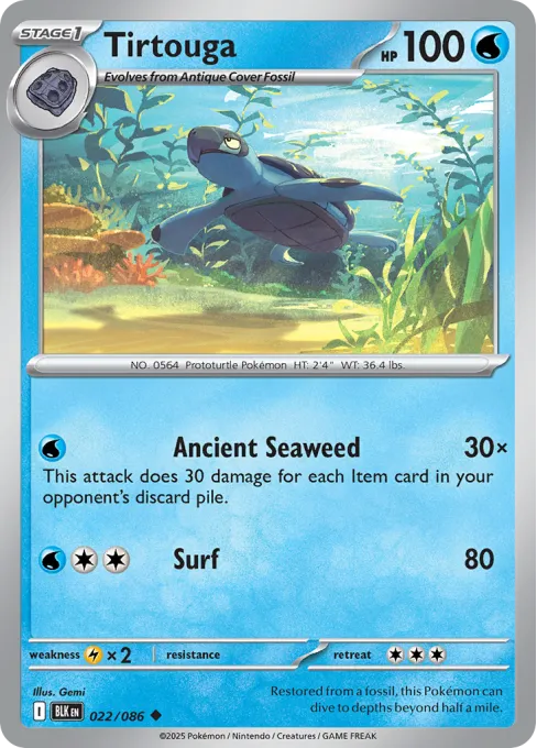 Restored from a fossil, this Pokémon can dive to depths beyond half a mile.