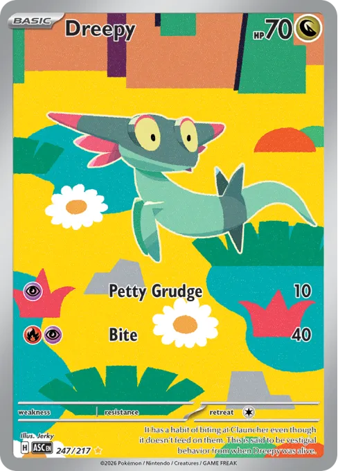 It has a habit of biting at Clauncher even though it doesn’t feed on them. This is said to be vestigial behavior from when Dreepy was alive.