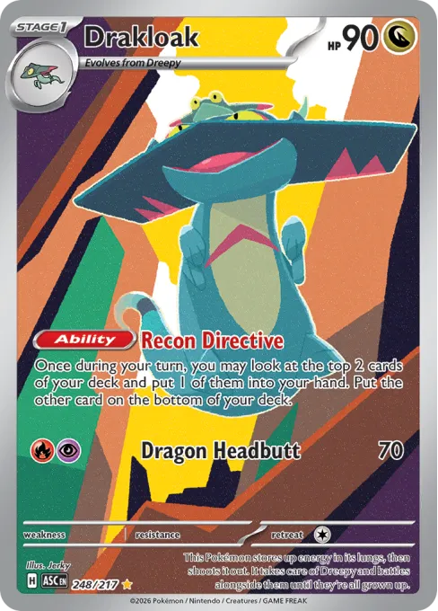This Pokémon stores up energy in its lungs, then shoots it out. It takes care of Dreepy and battles alongside them until they’re all grown up.
