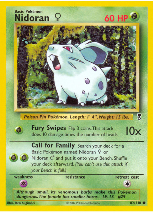 Although small, its venomous barbs make this Pokémon dangerous. The female has smaller horns.
