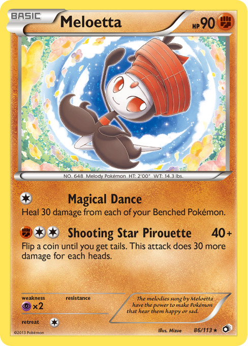 The melodies sung by Meloetta have the power to make Pokémon that hear them happy or sad.