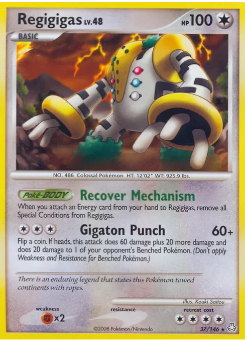 When you attach an Energy card from your hand to Regigigas, remove all Special Conditions from Regigigas.