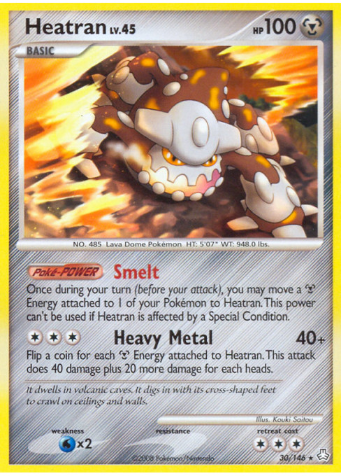 Once during your turn (before your attack), you may move a Metal Energy attached to 1 of your Pokémon to Heatran. This power can't be used if Heatran is affected by a Special Condition.