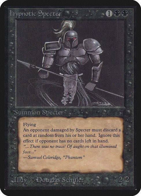 Whenever Hypnotic Specter deals damage to an opponent, that player discards a card at random.