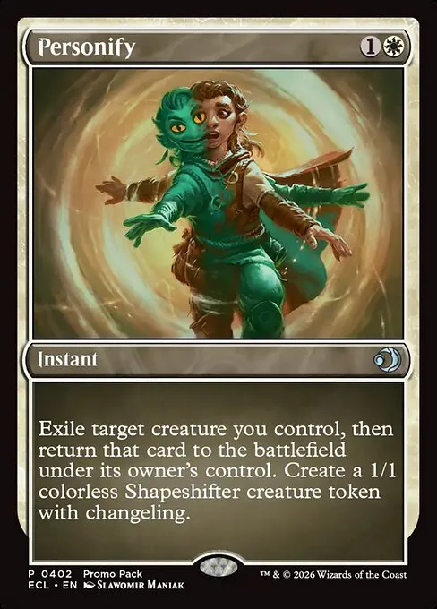 Exile target creature you control, then return that card to the battlefield under its owner's control. Create a 1/1 colorless Shapeshifter creature token with changeling. (It's every creature type.)
