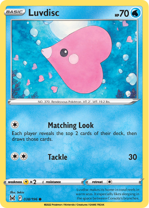Luvdisc makes its home in coral reefs in warm seas. It especially likes sleeping in the space between Corsola's branches.