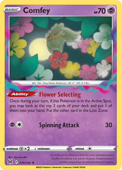 Comfey picks flowers with its vine and decorates itself with them. For some reason, flowers won't wither once they're attached to a Comfey.