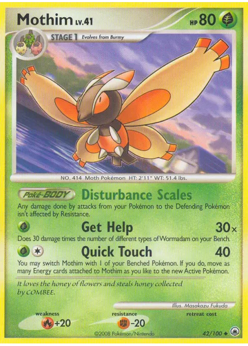 You may switch Mothim with 1 of your Benched Pokémon. If you do, move as many Energy cards attached to Mothim as you like to the new Active Pokémon.