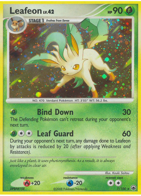 During your opponent's next turn, any damage done to Leafeon by attacks is reduced by 20 (after applying Weakness and Resistance).