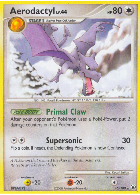A Pokémon that roamed the skies in the dinosaur era. Its teeth are like saw blades.
