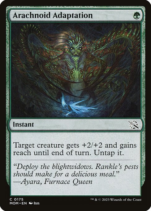 Target creature gets +2/+2 and gains reach until end of turn. Untap it.