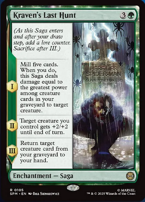 (As this Saga enters and after your draw step, add a lore counter. Sacrifice after III.) II — Mill five cards. When you do, this Saga deals damage equal to the greatest power among creature cards in your graveyard to target creature. II — Target creature you control gets +2/+2 until end of turn. III — Return target creature card from your graveyard to your hand.