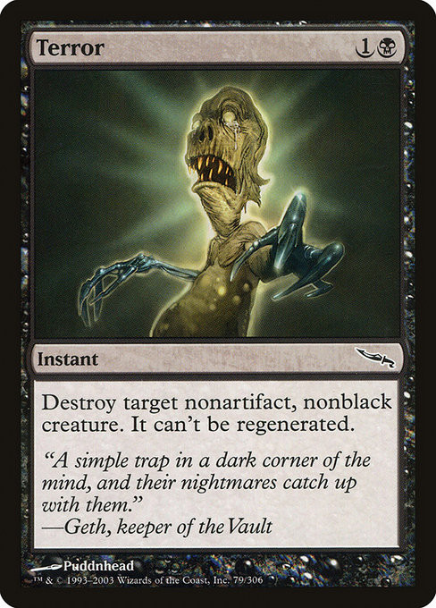 Destroy target nonartifact, nonblack creature. It can't be regenerated.