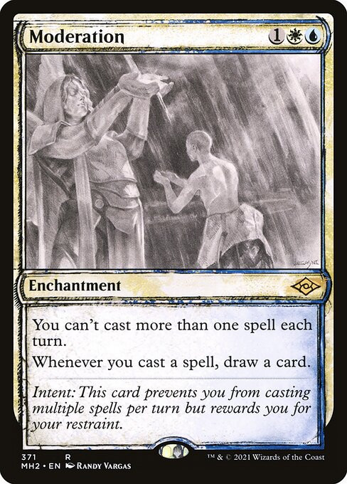 "Intent: This card prevents you from casting multiple spells per turn but rewards you for your restraint."